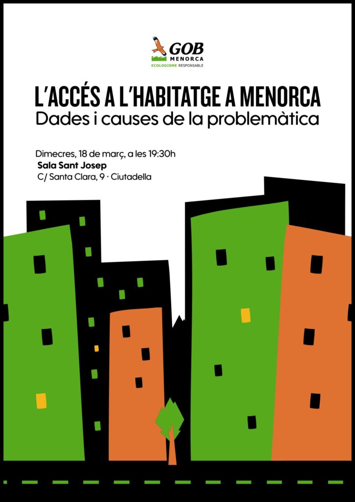 18 març – Xerrada “L’accés a l’habitatge a Menorca” a la Sala Sant Josep (Ciutadella)