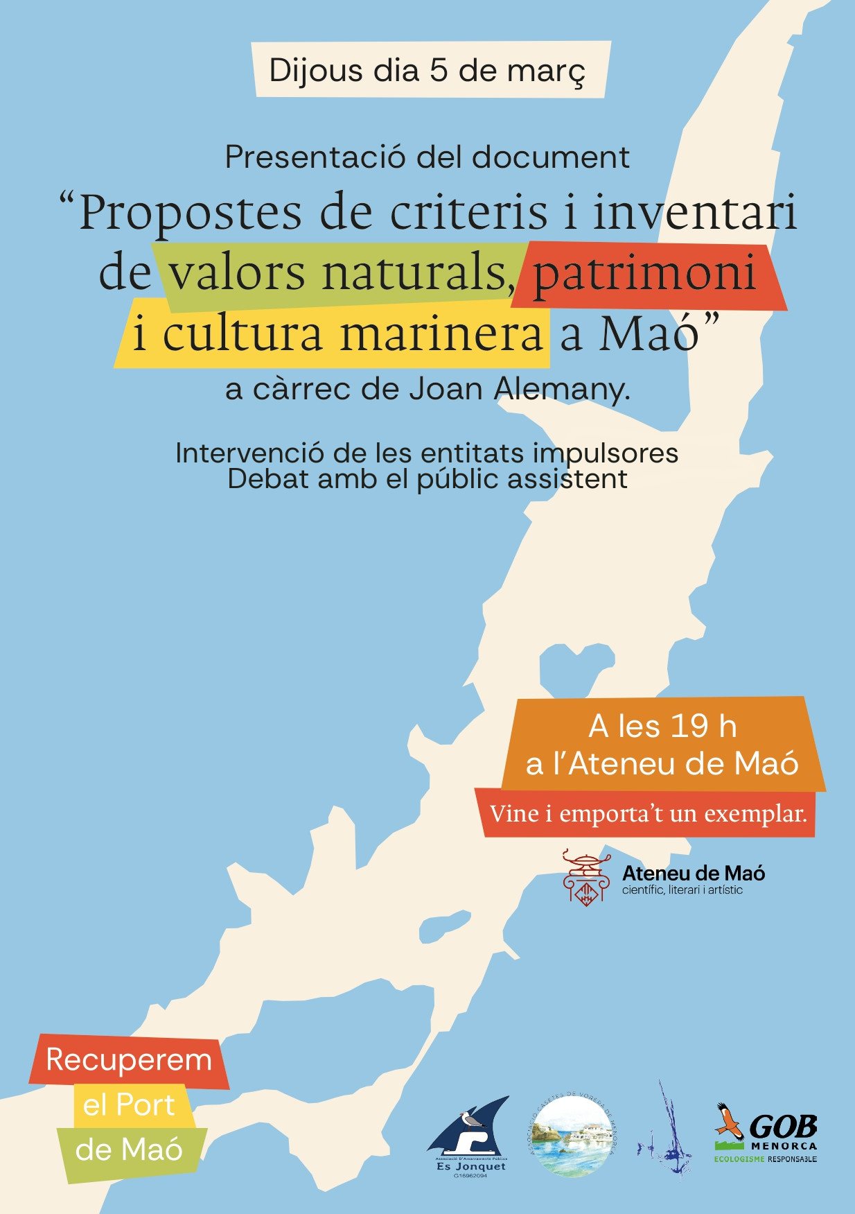 El port de Maó acull encara una gran quantitat de valors culturals, ambientals i socials que sovint no són tenguts en compte. En aquesta jornada es presentarà un document de propostes de gestió, elaborades conjuntament per quatre entitats.