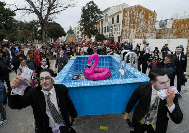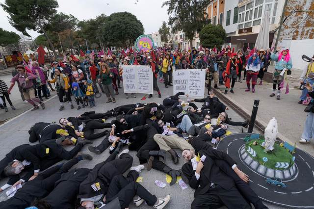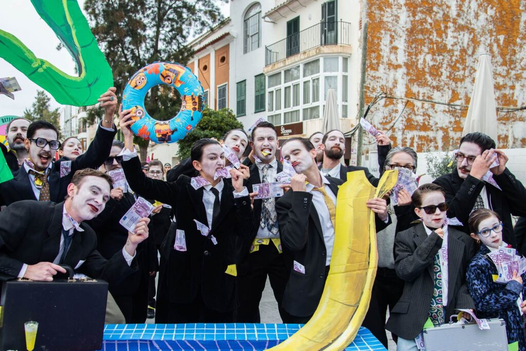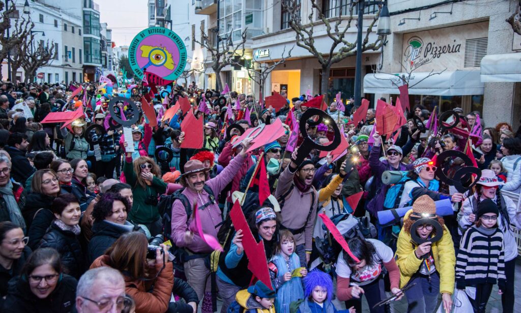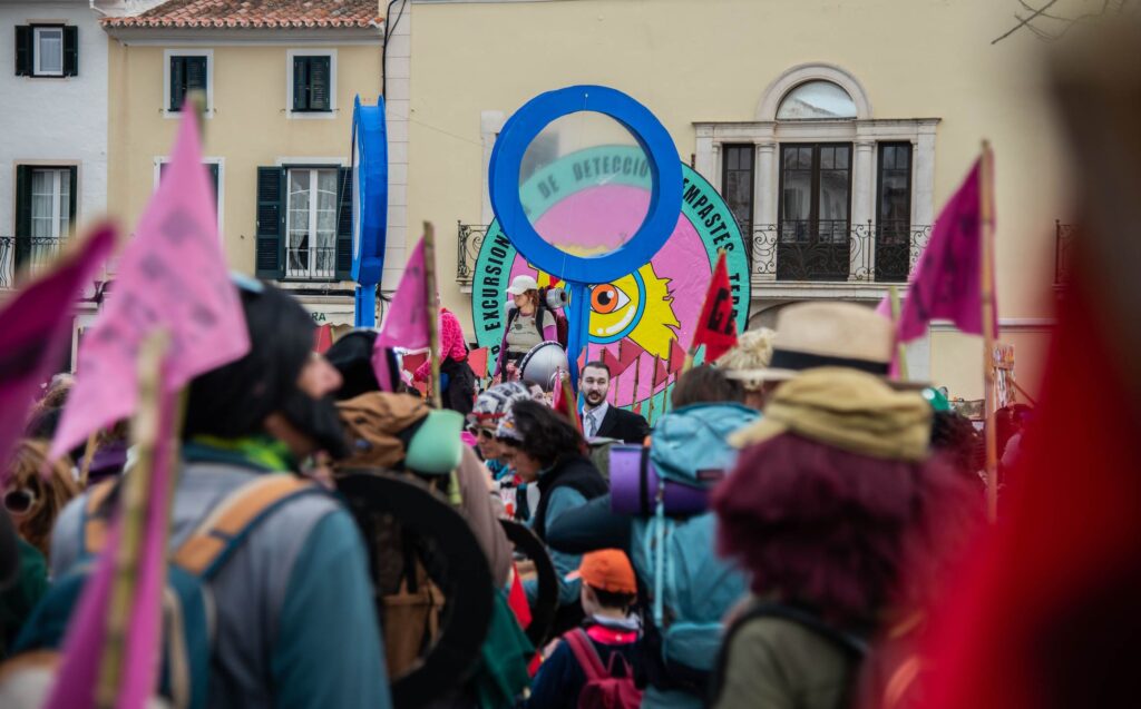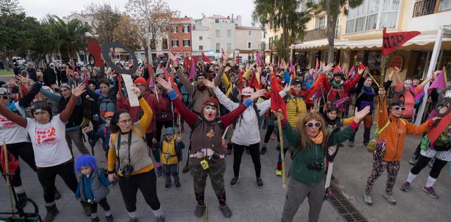 Molta gent va participar en la comparsa de carnaval que es va organitzar en el marc de la campanya Via Menorca.