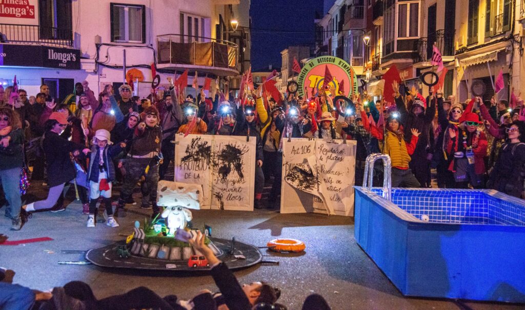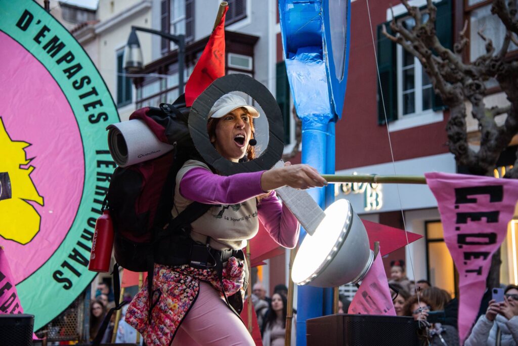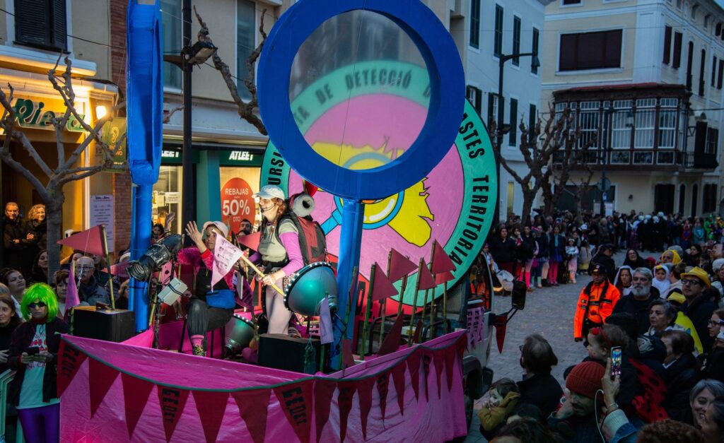 La carrossa, ambientada amb logotips, música i llums, va passejar pels carrers de Maó, omplint de festa però també de reflexions sobre el model d’illa que volem defensar. Una energia alegre i reivindicativa que ha estat possible gràcies a la col·laboració de diversos equips que han participat en les labors prèvies de muntatge i també assistint a la rua. La comparsa va merèixer el premi a la millor coreografia.